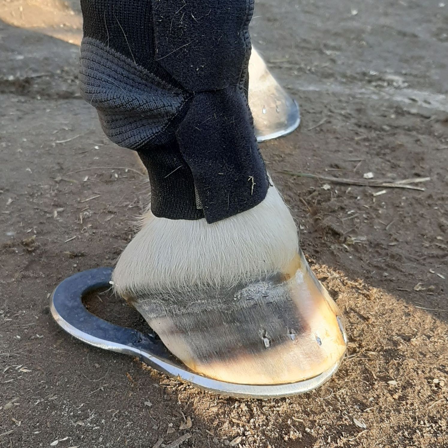 Dieses Shetty wurde vorgestellt mit viel zu langen Hufen. Nach einer Kontrolle der Gelenken mittels Röntgenbildern wurde das überschüssige Horn entfernt.