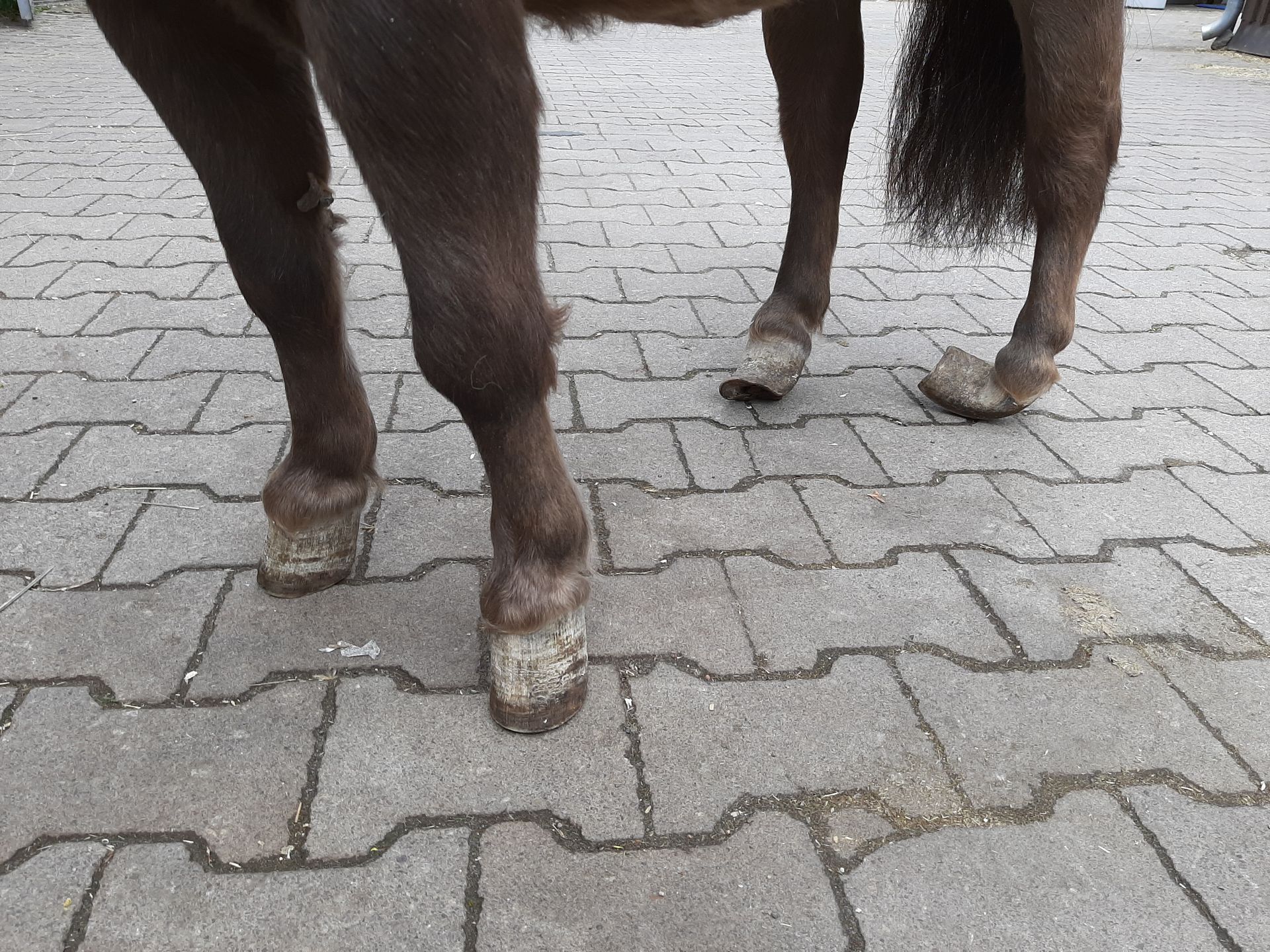Auf den Bildern sieht man, wie lang die Hufe sind. Nach dem Ausschneiden (Bilder fehlen leider) stand das Tier schon viel besser.